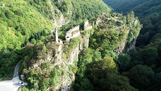 The remains of two towers were preserved, southeastern tower of smaller dimensions in the upper town and the dungeon tower on the northern corner, above the very road. That tower of rectangular base is well preserved in two stories high.